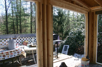 This is the progress on our bird/rabbit room.It`s off the kitchen,will have a drain in the ceramic tile floor,& I already have a hose that hooks to the kitchen sink that runs out there that far so it will be easy to clean.The roof is done with the skylight.They had to finish up another project today somewhere else,so I was able to get pictures of what is done so far.Some of the deck is left,enough to have the grill still outside & patio tables & chairs.